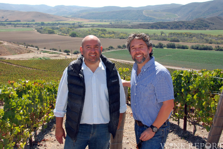 たもとをわかったラジャ・パー(左)とサシ・ムーアマン サンタ・リタ・ヒルズの畑で 2014年撮影
