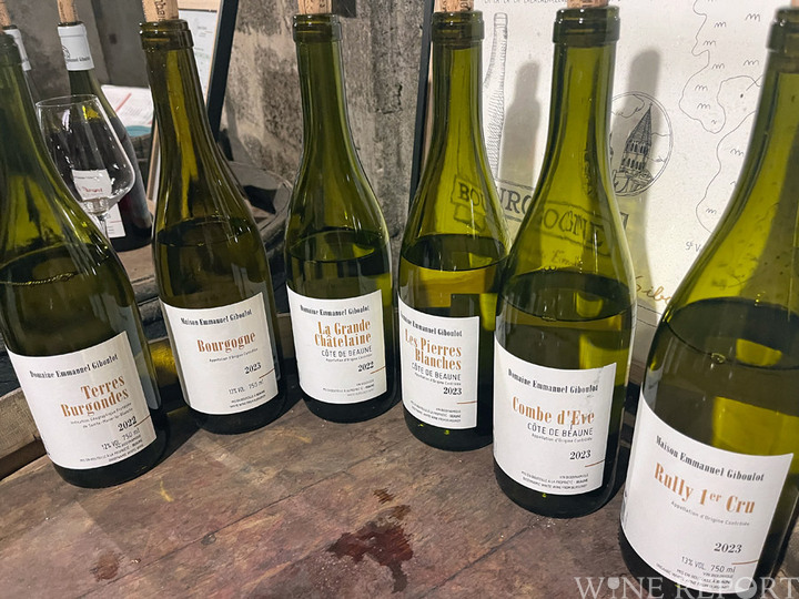 「ドメーヌ・エマニュエル・ジブロ ボーヌ・リュリュンヌ 2023」(Domaine Emmanuel Giboulot Beaune Lulunne 2023)はクロ・デ・ムーシュの下部の小さな谷の窪地。水はけがよい。ポマールとの境界にあり、ややローミィでしっかりしたタンニン。骨格があり、レッドチェリー、シャクヤク、バラの花弁、風味豊かでグリップのあるフィニッシュ。92点。