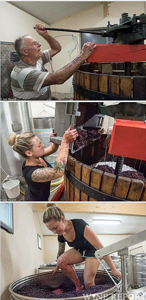 醸造は手作業と足作業。野生酵母で発酵させ、ラチェット(歯止め)機構の旧式プレス機で圧搾した。足踏みで優しく抽出し、果汁をバケツで上からかけて果房を湿らせた。アンフュージョン(浸漬)である。愛情をこめてラベルを手貼りし、ボトルに手でワックスをかけた。2000本のガレージワインはすぐに売れた。