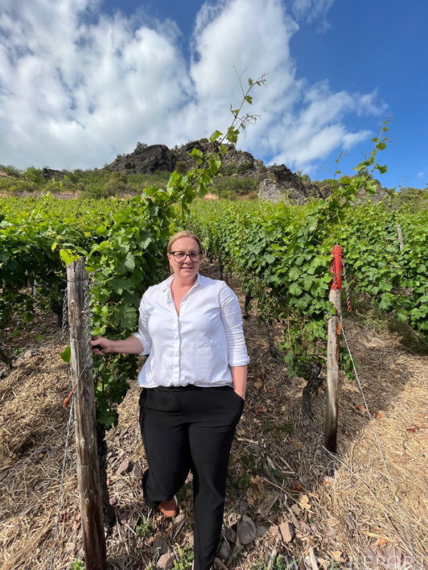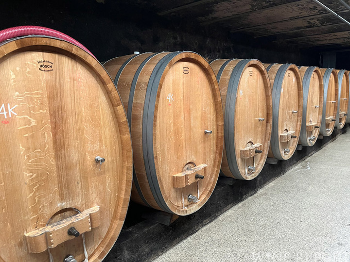30度から45度の雄大な傾斜地に粘板岩、砂岩、石灰岩、ロームの土壌が広がる。手摘みしたブドウはゆっくりと圧搾して、1000Lを超す大きなオーク樽とステンレスタンクで発酵する。