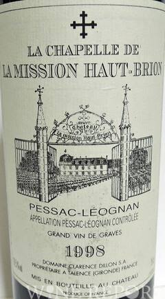 1998年のペサック・レオニャンは買い、メルロが成功したラ・シャペル・ド・ラ・ミッション・オー・ブリオン1998