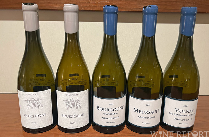 「ドメーヌ・アルノー・アント ブルゴーニュ・シャルドネ 2021」(Domaine Arnaud Ente Bourgogne Chardonnay 2021)は熟したレモンの皮、桃、濡れた石、シャープな酸、サテンのテクスチャー、液体の粒子が細かい。純粋で洗練されている。塩気を帯びた余韻は長い。熟成はワイングローブ20%、フードル80%。6万6000円。92点。