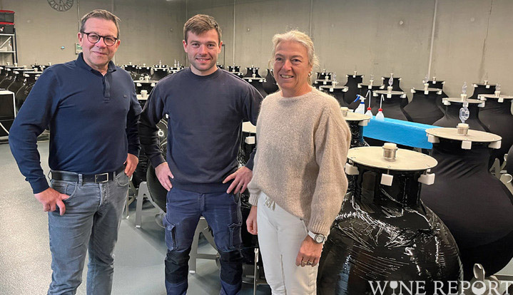 ガラス容器に入れた水の口当たりが好きだったのがきっかけで、ボルドーのスタートアップ企業と共同で2017年から開発した。それまで使ってきたフードルからワイングローブに切り替え、2023年から100%ワイングローブで醸造している。