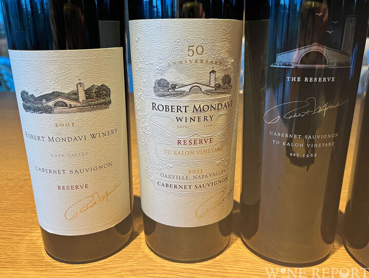 「ロバート・モンダヴィ カベルネ・ソーヴィニヨン ・リザーブ 2001」(Robert Mondavi Cabernet Sauvignon Reserve 2001)はカベルネ・ソーヴィニヨン88%、カベルネ・フラン10%、残りはマルベックとプティ・ヴェルド。腐葉土、鉛筆の削りかす、黒煙、凝縮感があり、きれいに熟成している。ただ、タンニンがやや乾き気味で余韻は中程度。時代が早すぎたか。ワインメーカーはティム・モンダヴィ。93点。